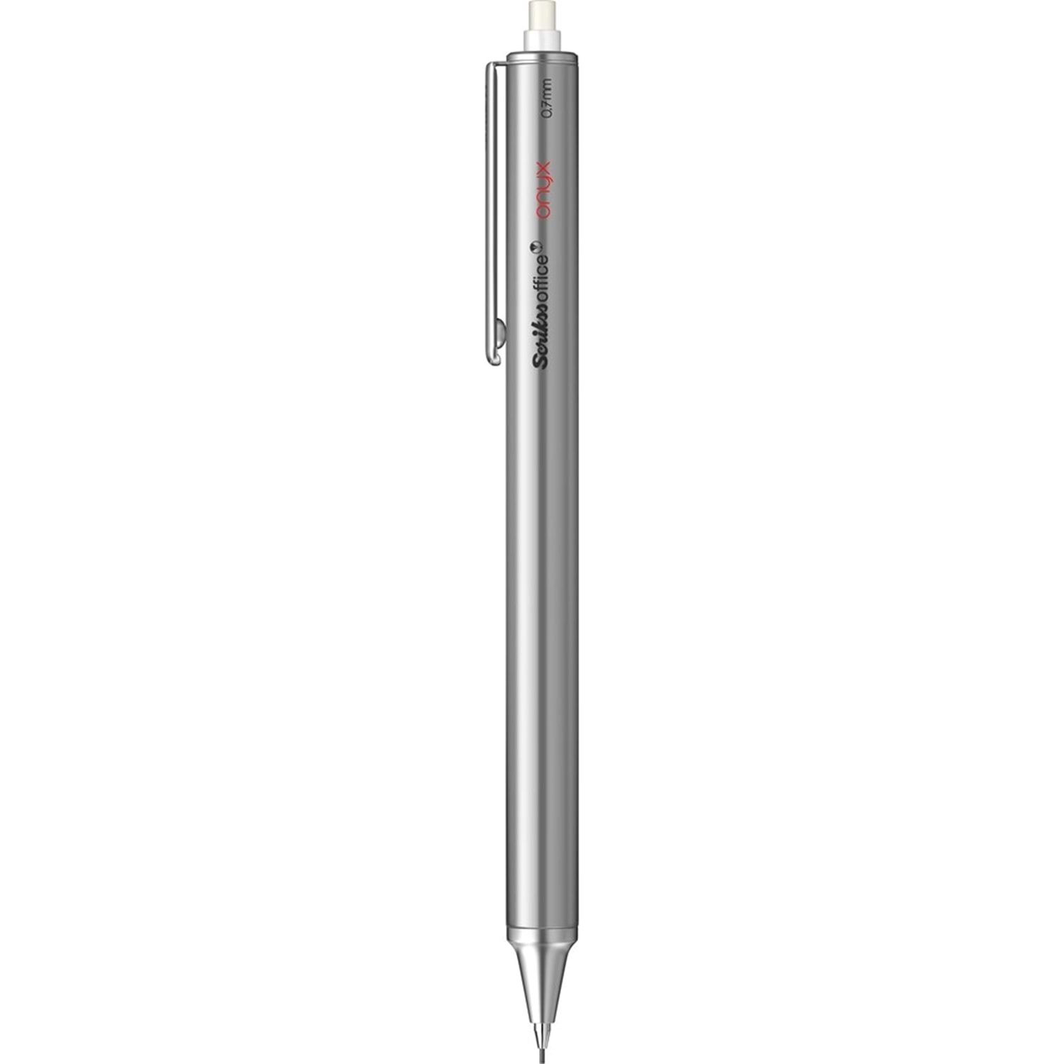 * Zarafet ve sadeliğin birleşimi; Yeni Onyx mekanik kurşun kalem, şık detayları ve üstün yazım deneyimi ile hem profesyonellerin hem de öğrencilerin vazgeçilmezi olmaya aday! • * Metal gövdesi sayesinde uzun ömürlü bir kullanım sağlarken, minimalist tasarımı ile estetik ve işlevselliği bir arada sunuyor. • * Farklı yazım ihtiyaçlarına uygun 0.5 mm veya 0.7 mm uç seçenekleri ile. • Metal klips ve tepede muhafazalı silgi • Tepeden basmalı mekanizma • Hafif, sağlam ve uzun ömürlü metal gövde • Ergonomik kavrama • Yazım konforu için süspansiyonlu ve gizlenebilir uç mekanizması • 0.7 mm • Gri